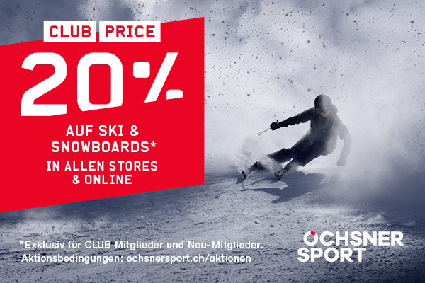 Vom 14. Oktober 2025 bis zum 30. April 2026 profitierst du als CLUB Mitglied – oder wenn du es jetzt wirst – von 20% Rabatt auf Ski und Snowboards!