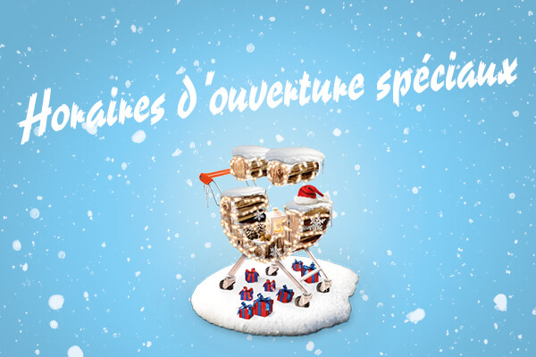Découvre ici à tout moment les heures d'ouverture spéciales actuelles pendant Noël et le Nouvel An.Découvrir maintenant