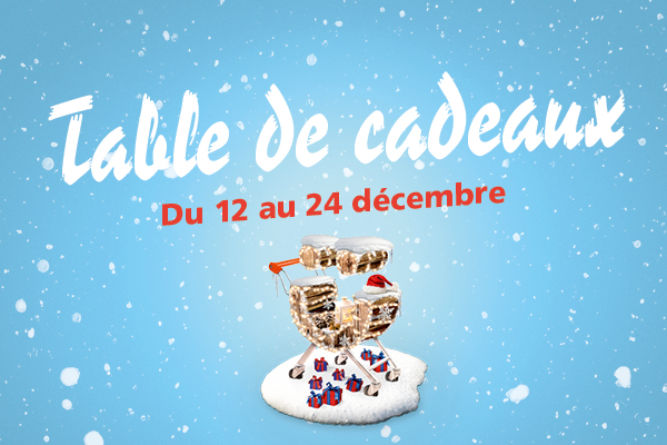 Table à cadeaux au Centre Brügg